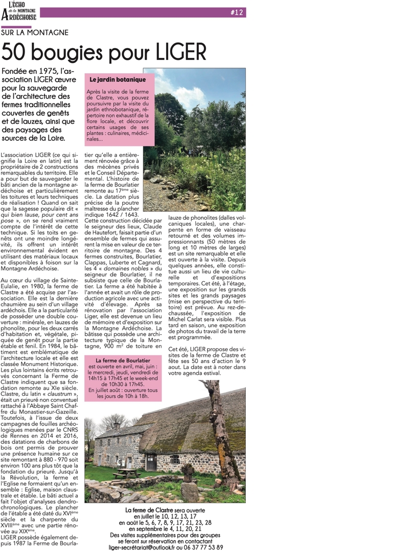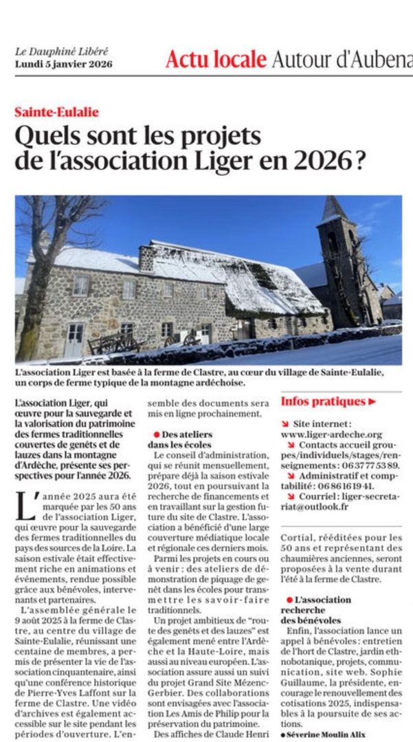 Chers adhérents, chers amis de LIGER, L’année 2025 s’achève après une saison estivale riche en évènements à l’occasion des 50 ans de l’association LIGER. Conférences, ateliers, concerts, stages de...